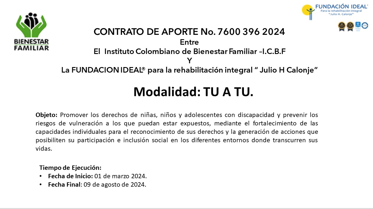 Objeto: Promover los derechos de niñas, niños y adolescentes con discapacidad y prevenir los riesgos de vulneración a los que puedan estar expuestos, mediante el fortalecimiento de las capacidades individuales para el reconocimiento de sus derechos y la generación de acciones que posibiliten su participación e inclusión social en los diferentes entornos donde transcurren sus vidas.